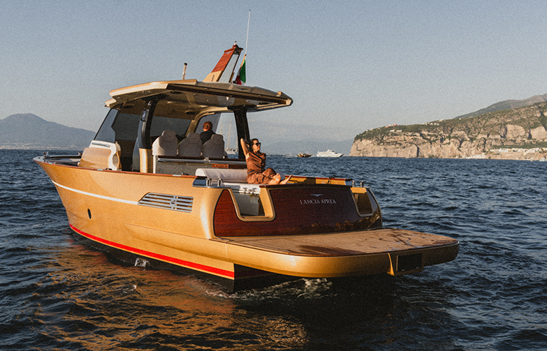 The Lancia Aprea 42 Gold Edition is a special version of the new Lancia Aprea 42, embodying the evolution of the traditional Gozzo Sorrentino. Built by Cantieri Aprea in collaboration with Victory Design by Brunello Acampora, the boat blends historical heritage with modern design and high performance.