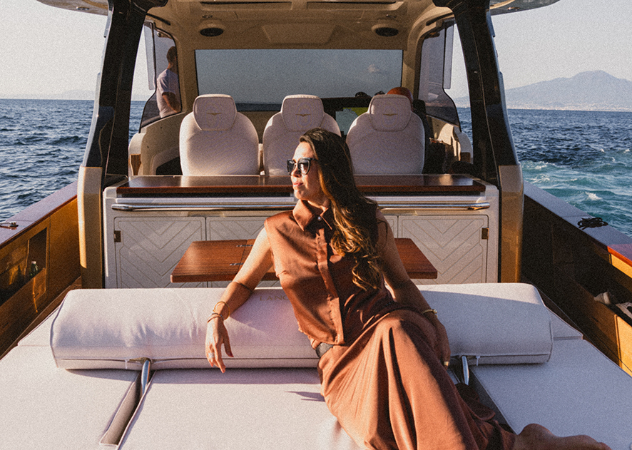 Gold Edition ("Aurora Gold"): This special edition stands out for its golden hull color paired with mirror-polished mahogany details, treated with sixteen coats of handcrafted varnish. The livery is inspired by the golden reflection of sunrise over the sea of Capri.