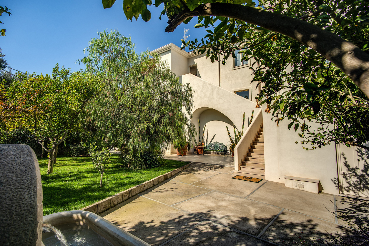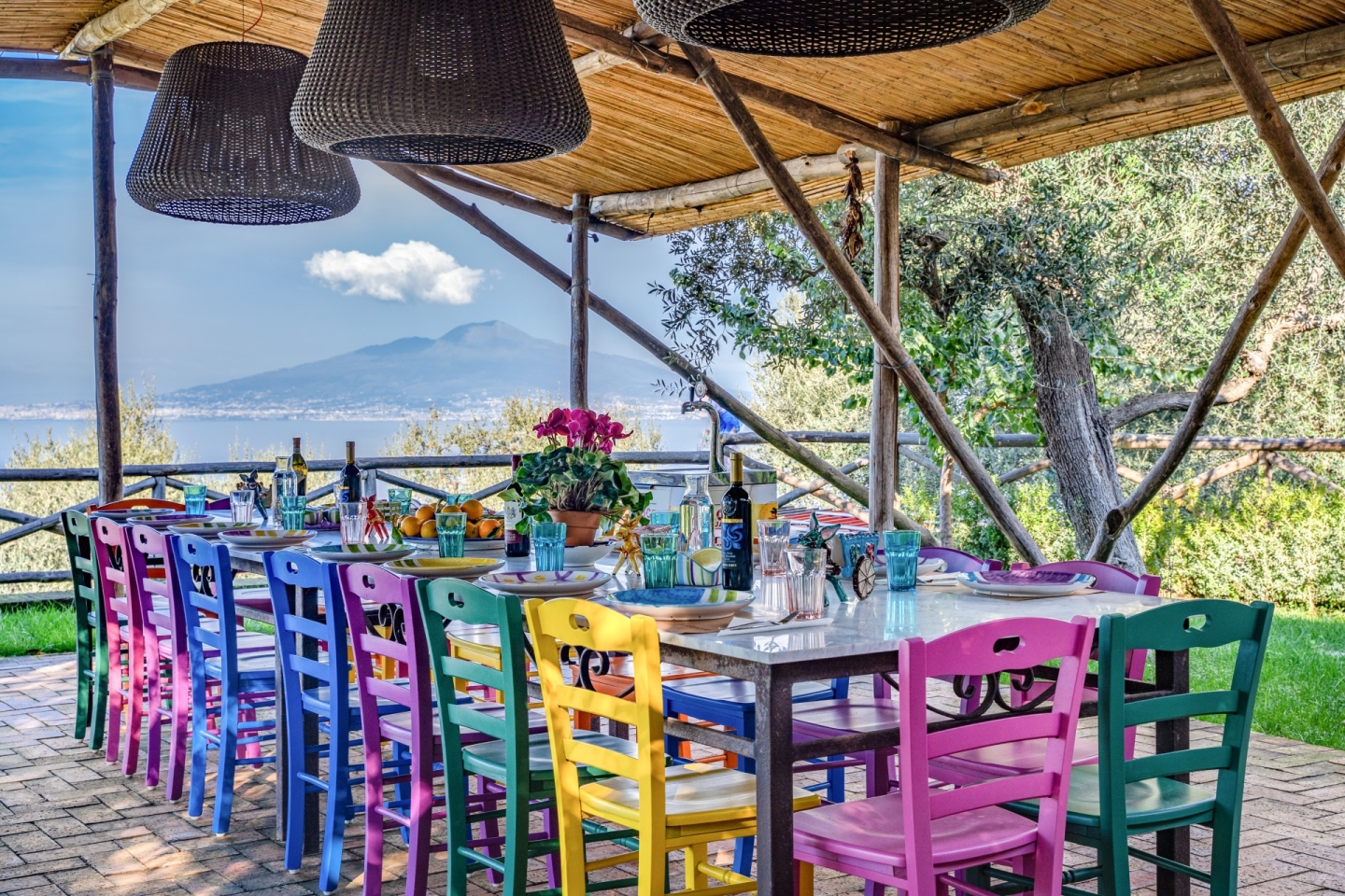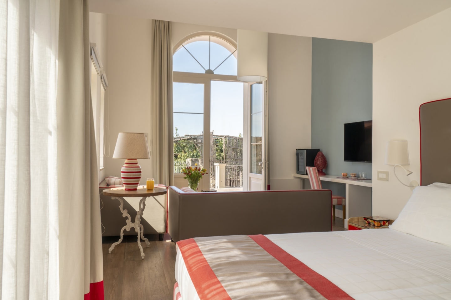 Villa del Duca is a refined relais, completely restored in 2017, nestled in the green hills of Sorrento. Surrounded by lush citrus groves and secular olive trees, the villa offers breathtaking panoramic views of the Sorrento Bay, the Gulf of Naples, the majestic Mount Vesuvius, and Capri with its Faraglioni rocks.