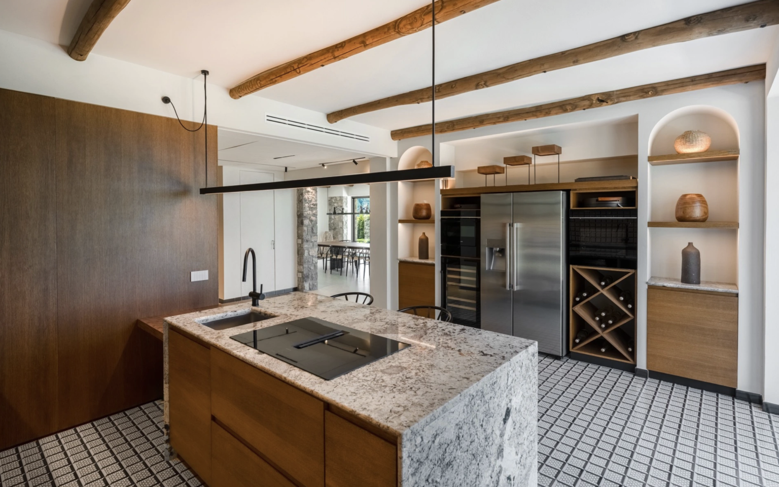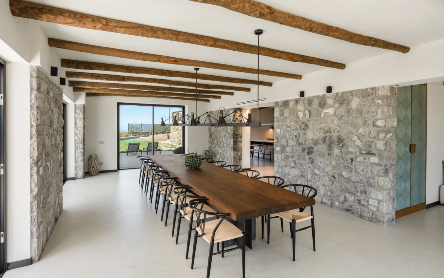 The estate is immersed in a beautiful fenced park, mostly maintained as a manicured lawn and planted at the back of the villa with evergreen trees that shade the pathways. Majestic centuries-old pines and exotic Canary Island Date Palms stand tall on the property, perfectly integrated into the Mediterranean scrub. The entrance to Villa Enrico is via an uphill driveway with access through an electric gate and a pedestrian walkway. Upon arriving at the villa, you will immediately find the covered parking area with an electronic charging station and a large panoramic porch with an outdoor relaxation area furnished with sofas and umbrellas. To the side of the villa, you will find the pool area with a relaxation zone, sunbathing areas, and an outdoor kitchen with a barbecue. Please note that photo shoots are usually taken in spring, so colors and blooms may vary.