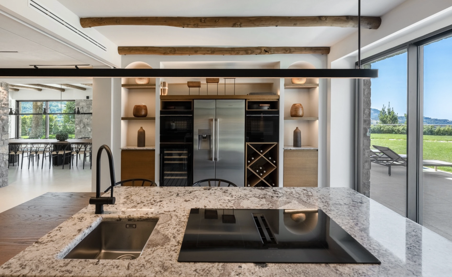 Nestled among the stunning landscapes of Massa Lubrense, just a few kilometers from Sorrento and major points of interest such as the famous Positano, Amalfi, and the entire picturesque Amalfi Coast. This wonderful property, immersed in a unique park, is the ideal location for those looking to spend a holiday in total privacy without sacrificing comforts and services worthy of a five-star hotel. These include a fantastic panoramic pool with a hydromassage tub, a small fitness area, an internal elevator, and private parking with an electric charging station. Inside, you will be welcomed by the warmth of a finely furnished modern structure, featuring handmade furniture crafted by local master carpenters using premium finishes and materials. Nothing has been left to chance! Looking out from the terraces of Villa Enrico, you will feel as though you can touch Capri with your fingertip. And as for Ischia... you only need to shift your gaze a little further to be intoxicated by a panorama that is truly world-class.