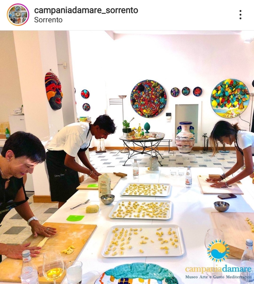 Preparati a un'esperienza culinaria unica che combina l'apprendimento delle ricette tradizionali con il divertimento. La lezione si svolge all'interno del nostro Store Campaniadamare (Museo Arte e Gusto in Sorrento) ed è animata dalla nostra Chef canterina!